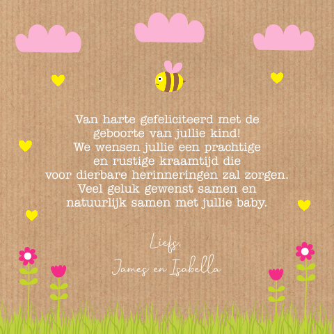 We willen je van harte feliciteren met de komst van jullie baby.